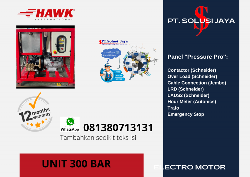 PRESSURE 300 BAR - 15 LT/M | HAWK PUMPS | HYDROTEST PUMP | PT SOLUSI JAYA